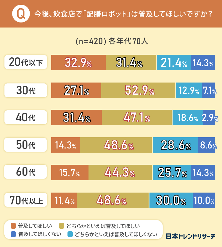 最後に、今後、飲食店で「配膳ロボット」が普及してほしいか聞きました。