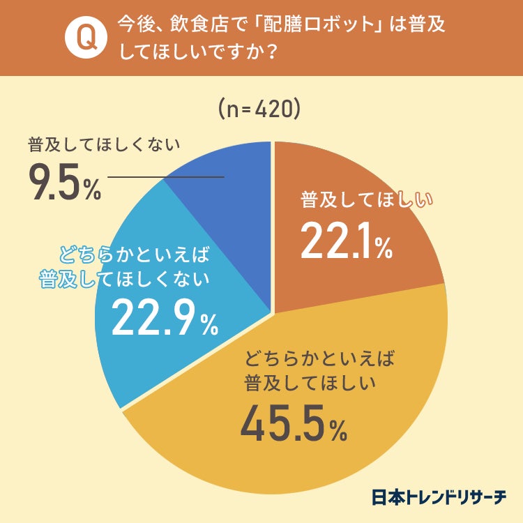飲食店の配膳ロボット、45.5%の方が「どちらかといえば普及してほしい」