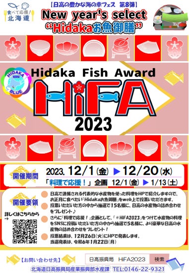 ~日高の豊かな海の幸フェス 第8弾~ HiFA(Hidaka Fish Award)2023 ~New year’s select Hidakaお魚御膳~ の開催について