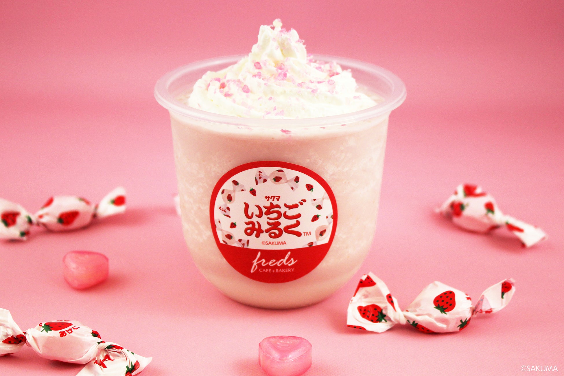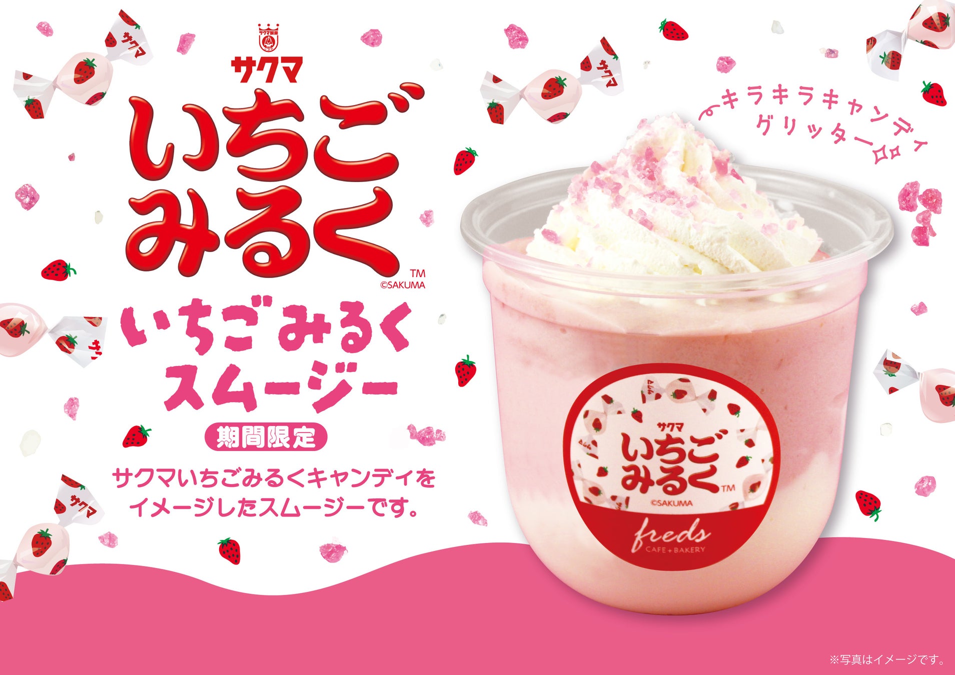 フレッズカフェではいちごみるくキャンディをイメージしたスムージーも登場!