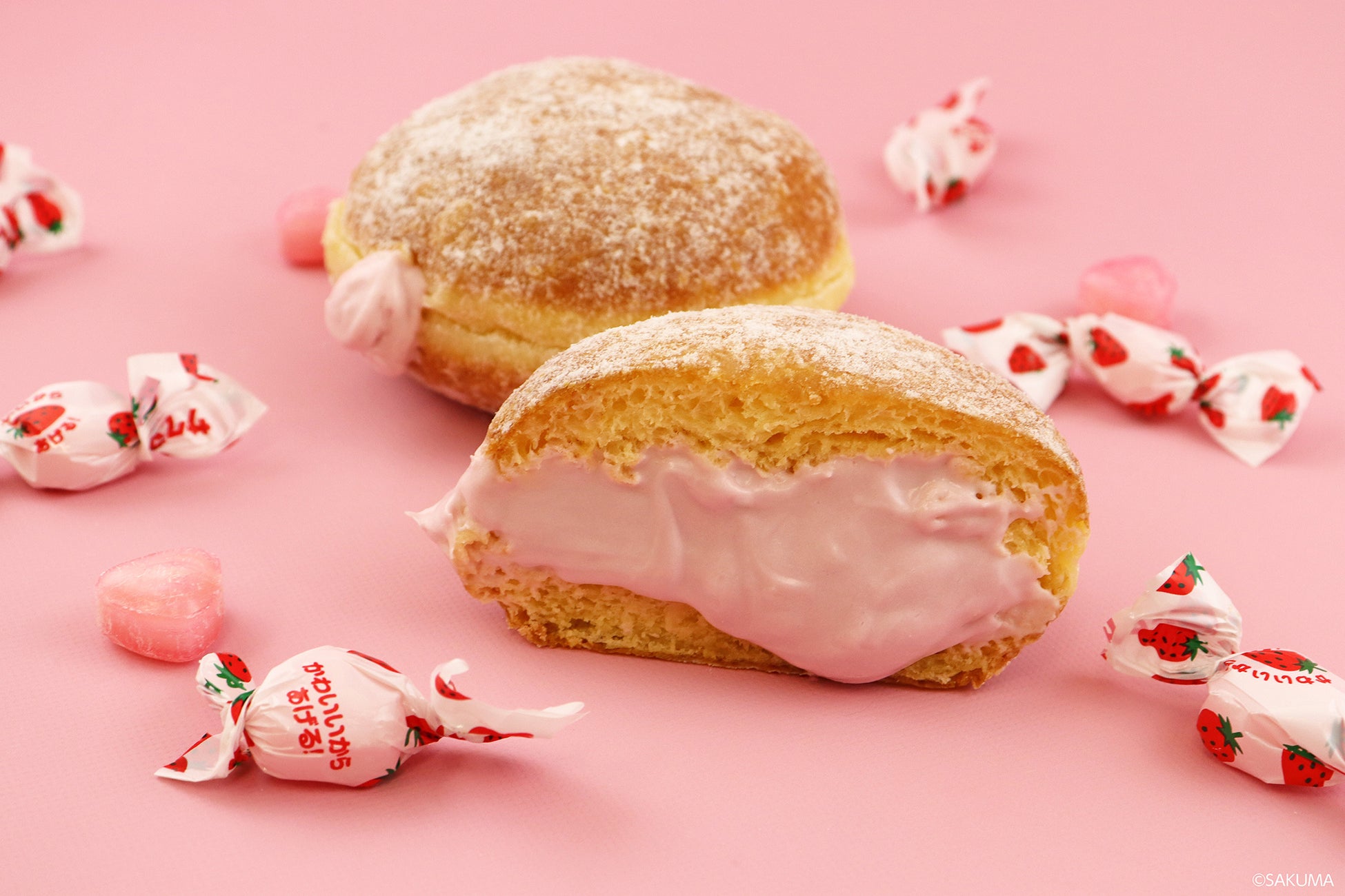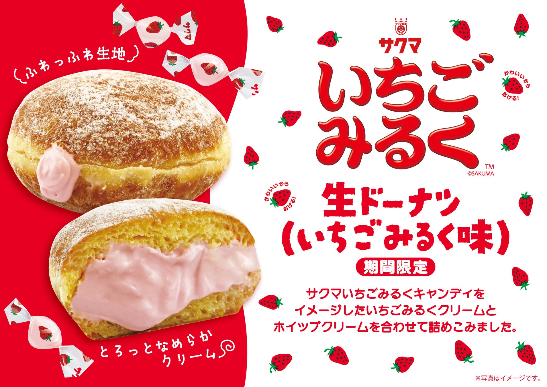 サクマ製菓の人気キャンディ「いちごみるく」とコラボレーションした生ドーナツが新登場!