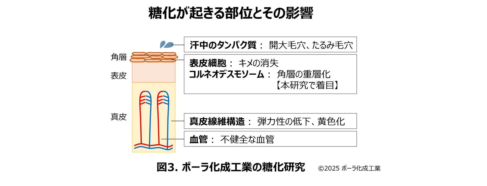 ポーラ・オルビスグループの研究・開発・生産を担うポーラ化成工業株式会社(本社:神奈川県横浜市、代表取締役社長:片桐崇行)は、皮膚の糖化研究を進め、以下を発見しました。