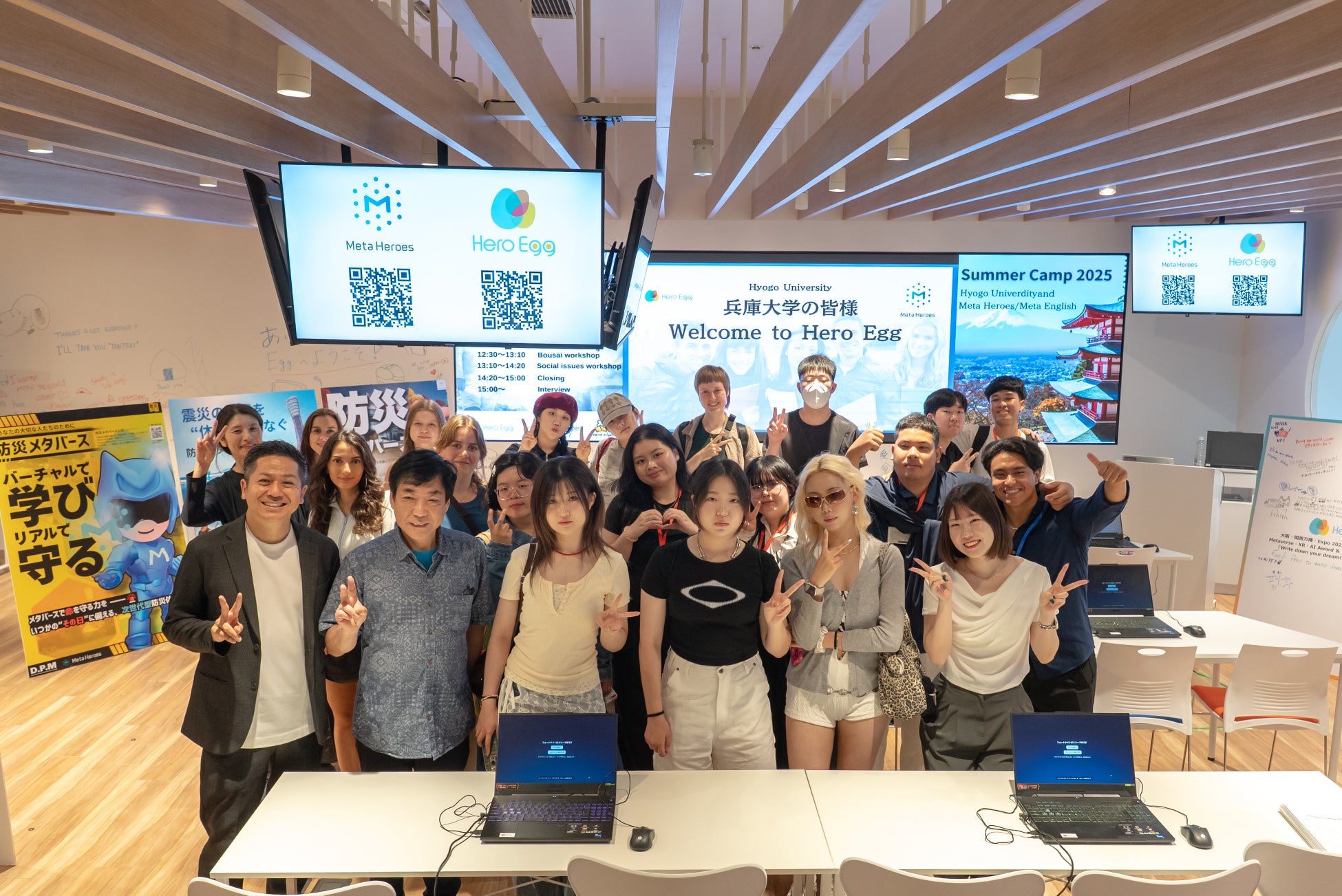 株式会社Meta Heroes(本社:大阪府大阪市、代表取締役:松石和俊)は、2025年6月27日、兵庫大学の外国人留学生サマーキャンプの一環として、当社が運営するDX教育スペース「Hero Egg」にて、「防災メタバース・ワークショップ」および社会課題に関する英語プログラムを実施いたしました。
