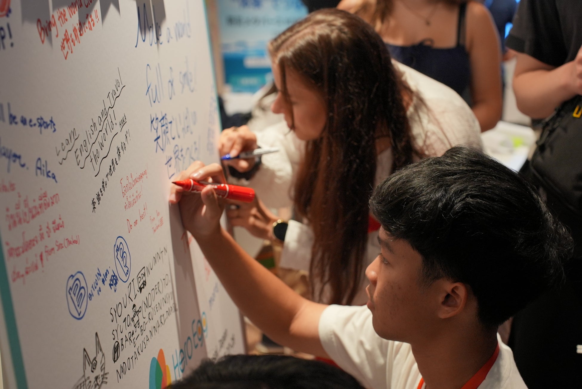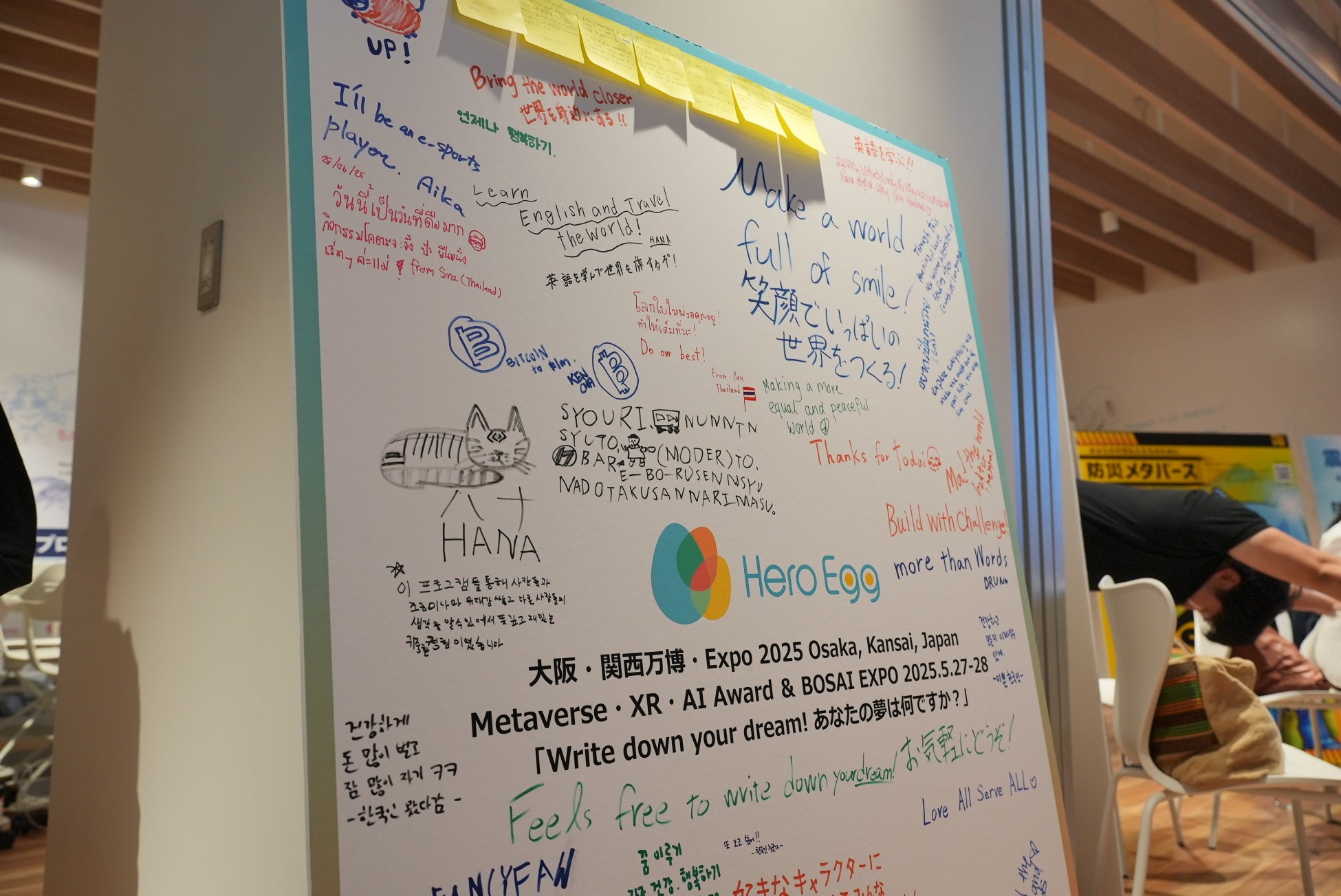 最後には、英語・韓国語・タイ語・日本語など各国の言語で“将来の夢”を書いた夢ボードを完成させ、思い思いの目標をHero Eggの壁に残しました。