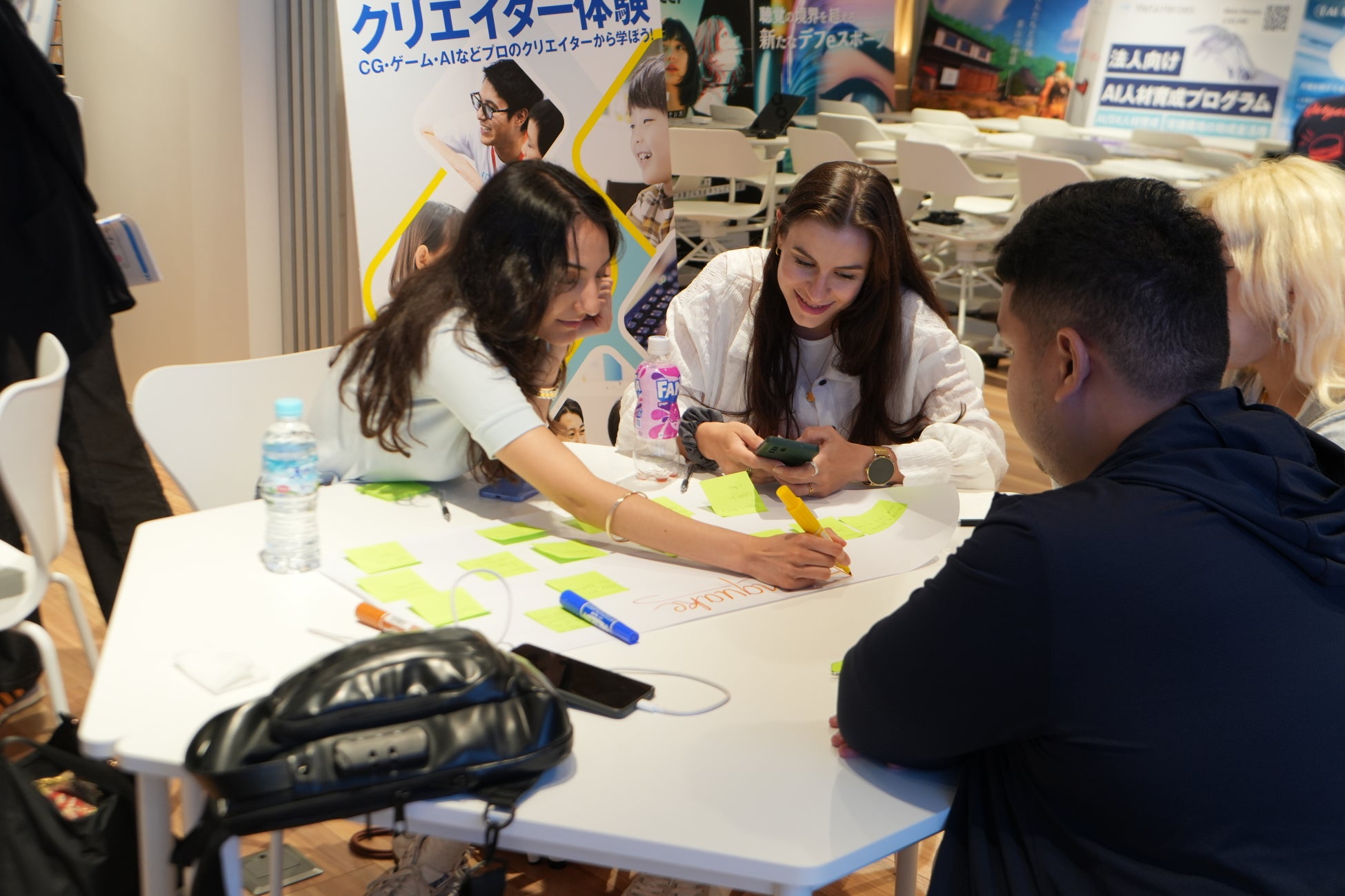 防災メタバースの体験後には、学んだ知識をさらに深めるためのグループワークを実施しました。参加者たちは、火災・洪水・台風・地震という4つの災害テーマごとにチームを編成し、それぞれの災害に対して「自分たちならどのように備え、どんな行動をとるか」を話し合いました。