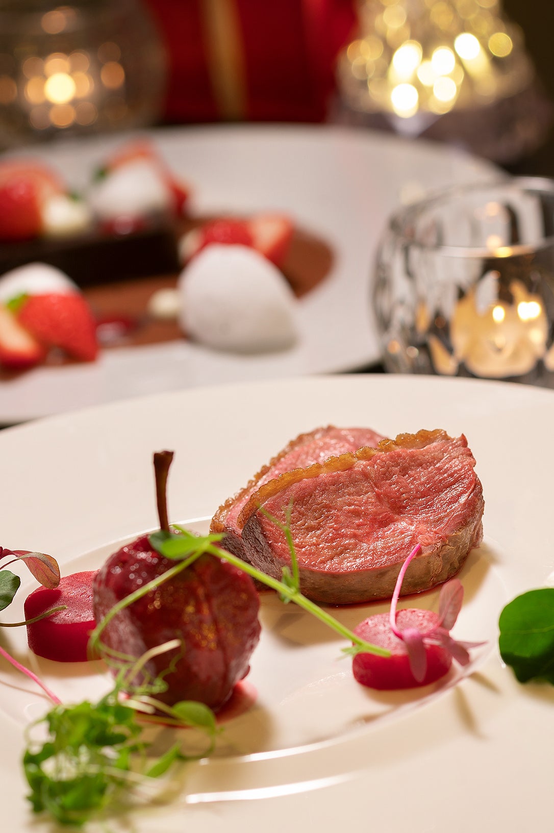 クリスマス期間中のレストランでは、ホテル最上階フロアからの夜景とともに聖夜にぴったりのフレンチフルコースや、焼き手のパフォーマンスも魅力的な鉄板焼コース、生演奏を聴きながら優雅なひと時をお過ごしいただけるレストラン、日本料理ならではのメニューが楽しめる和食レストランなどお好みのスタイルからクリスマスメニューをお選びいただけます。