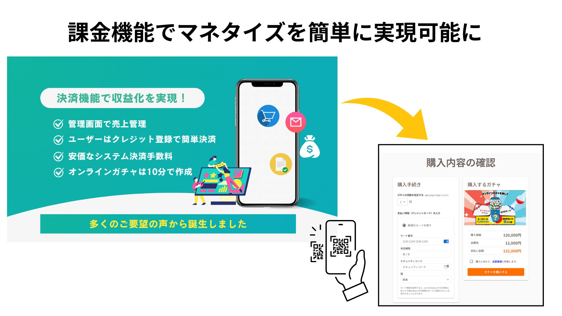 「クロワッサン」の課金機能も便利です。「クロワッサン」をご活用いただく利用者様は管理画面で売上を管理でき、ガチャを回すユーザーはクレジットカードを登録することで簡単に決済することができます。