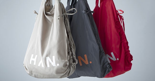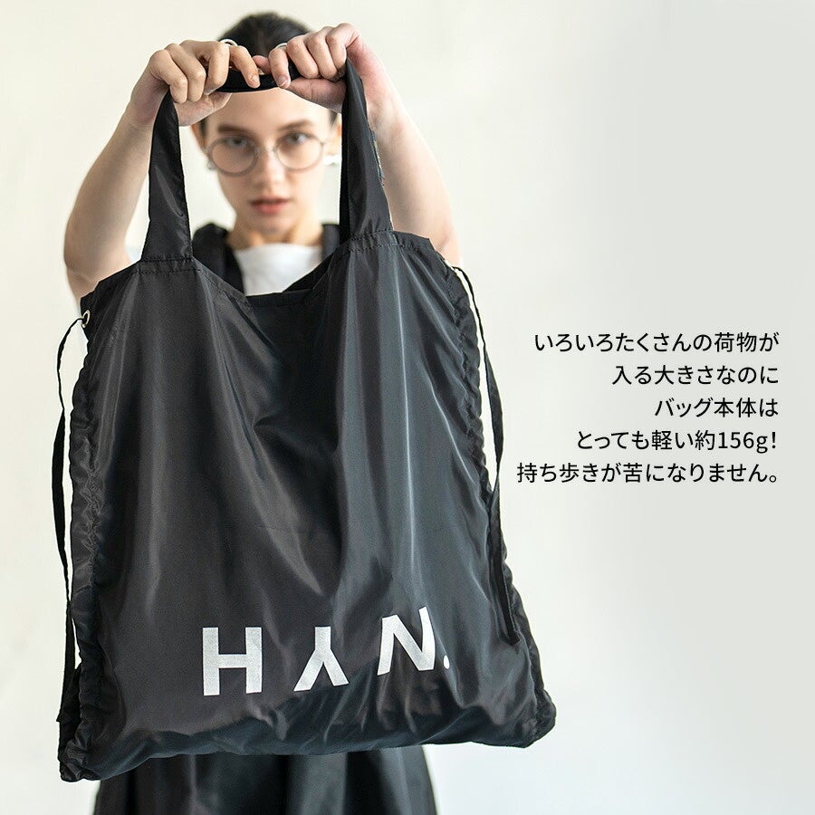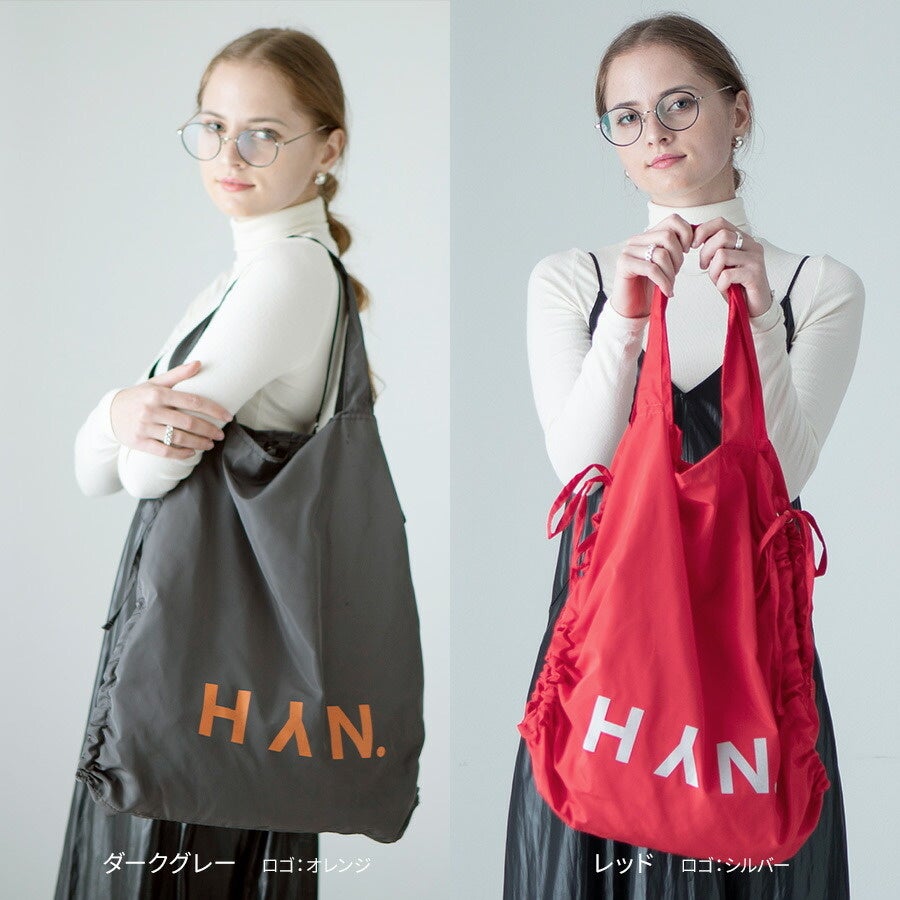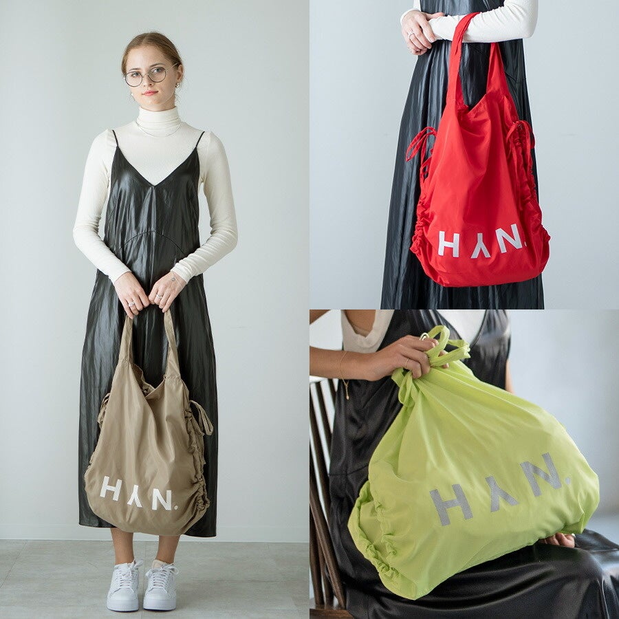 バッグとは対照的な色でプリントされたHAYNIのロゴの「HYN.」の文字も、