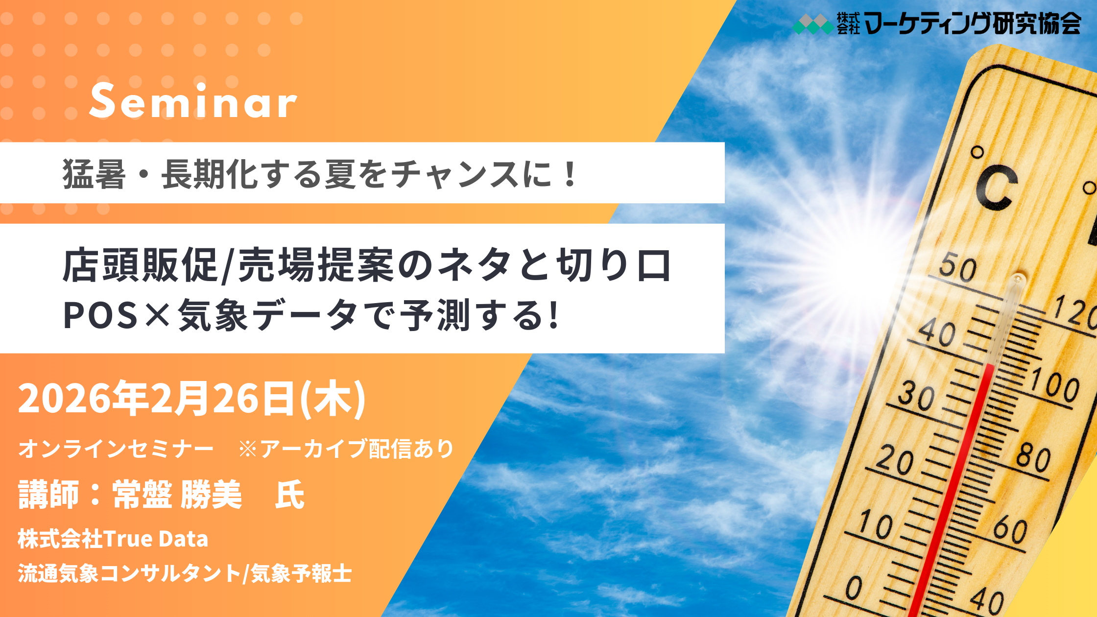 POS×気象データで読み解く2026年の売れるテーマ!「猛暑・長期化する夏をチャンスにする店頭販促と売場提案」オンラインセミナー2月26日開催 株式会社マーケティング研究協会