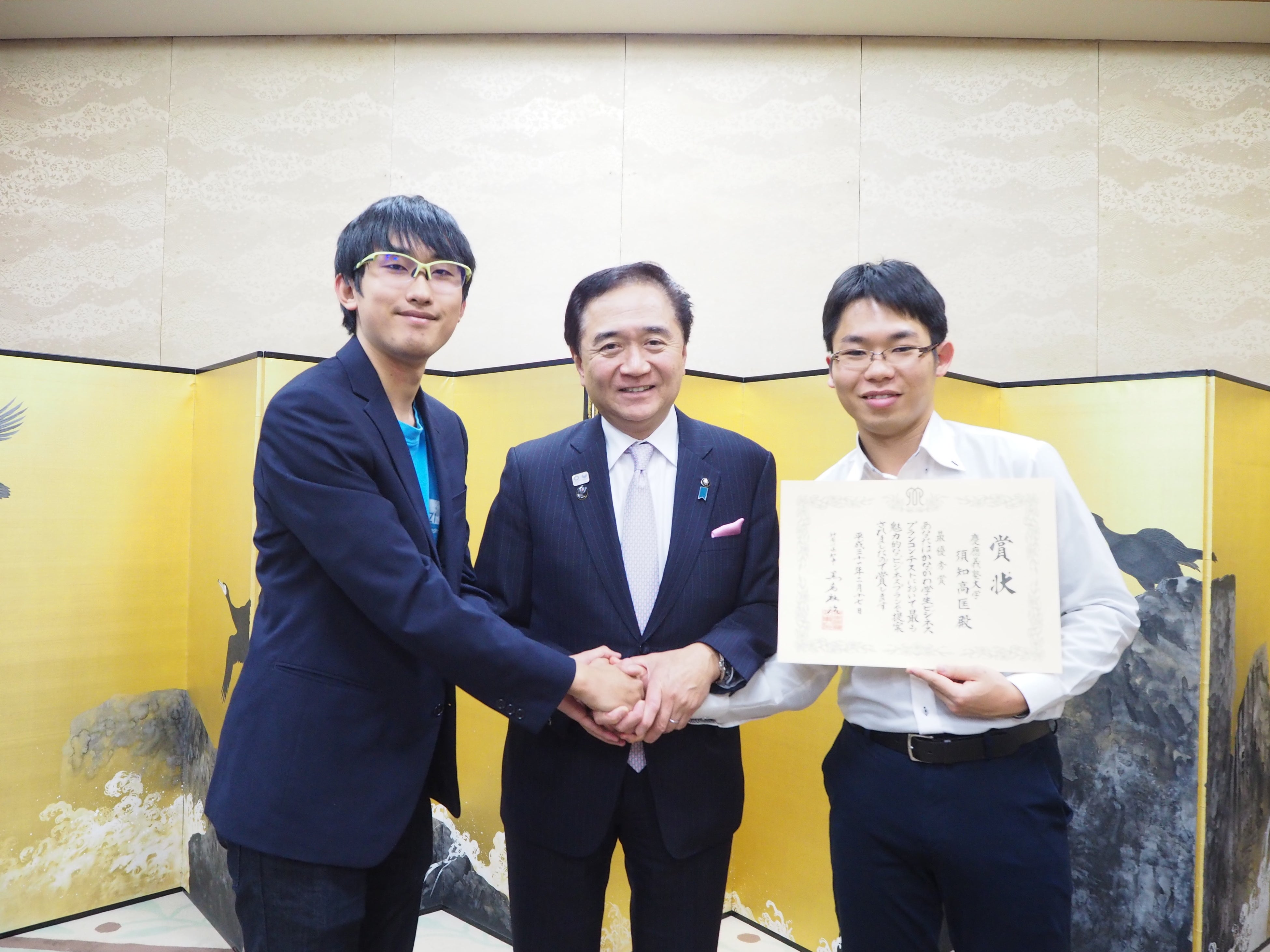 (自走型ロープウェイ「Zippar」) (知事賞を受賞した際の写真:写真左:須知 社長)