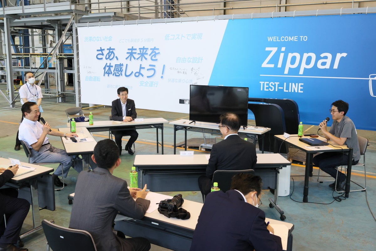 はじめに、Zip Infrastructure株式会社の須知 代表取締役社長から、開発中の「自走型ロープウェイ『Zippar』」の特徴、従来の交通機関と比較した際の利点などの説明を聞きました。