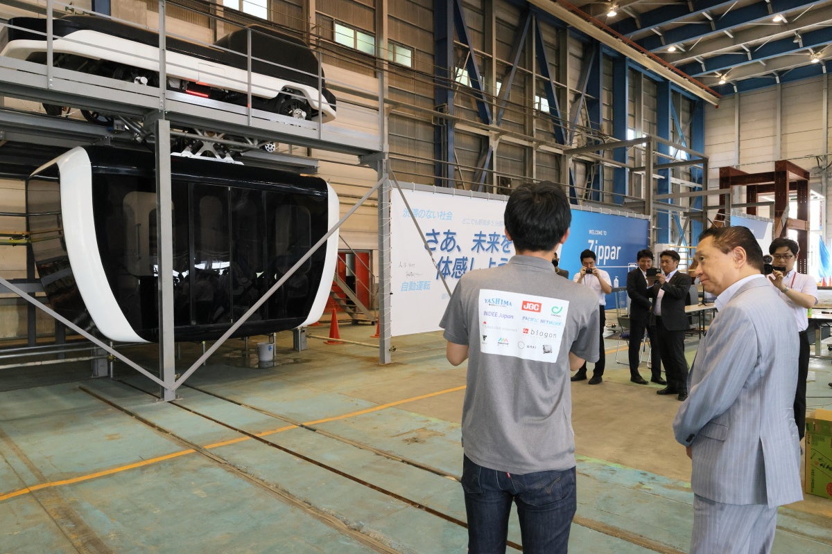 続いて、Zip Infrastructure株式会社の工場内に設置された「Zippar」の試作機に乗車しました。
