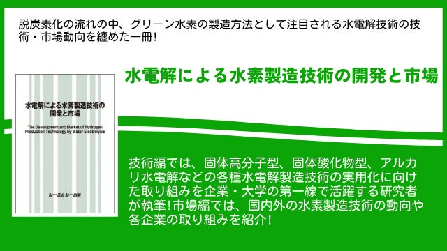 カーボンニュートラルの実現に向けたグリーン水素の製造技術として注目される水電解技術を纏めた書籍「水電解による水素製造技術の開発と市場」が8月2日発刊!