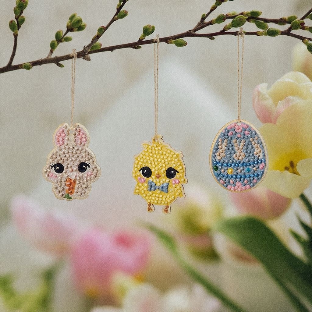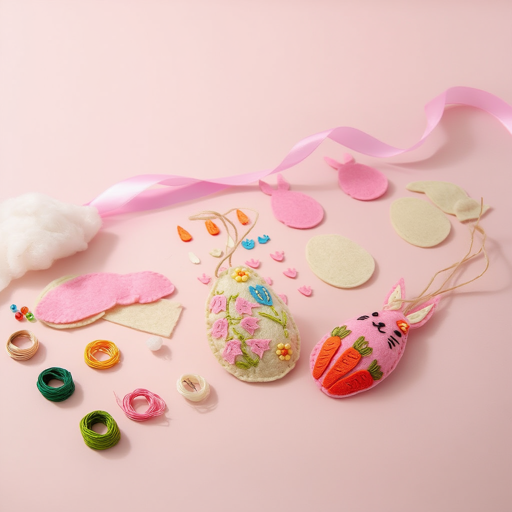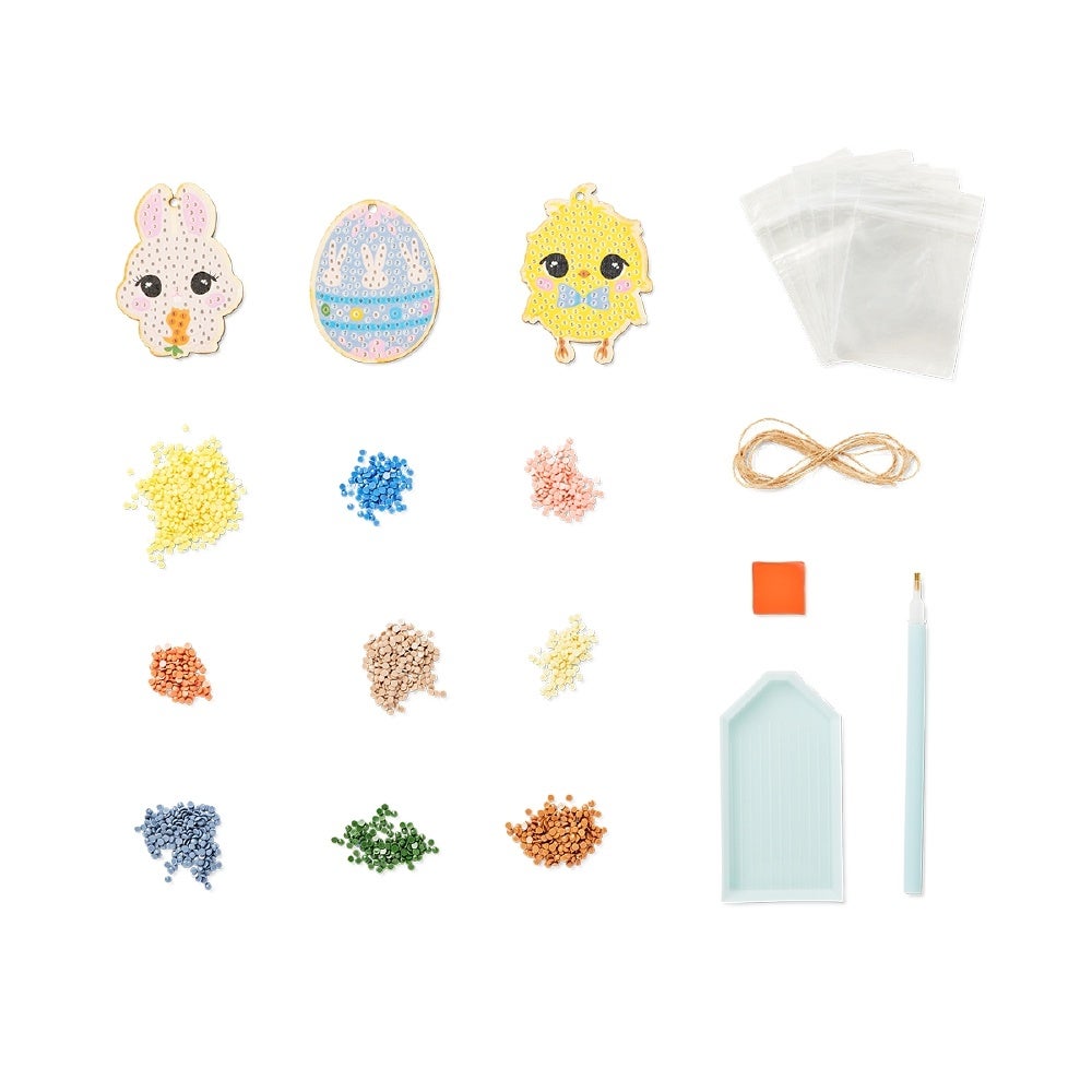 フェルトにビーズ、刺繍糸に針と綿まですべてがセットに!うさぎとたまごに刺繍をして、デコレーションを作ることができます。できあがったものはキーホルダーにしても◎