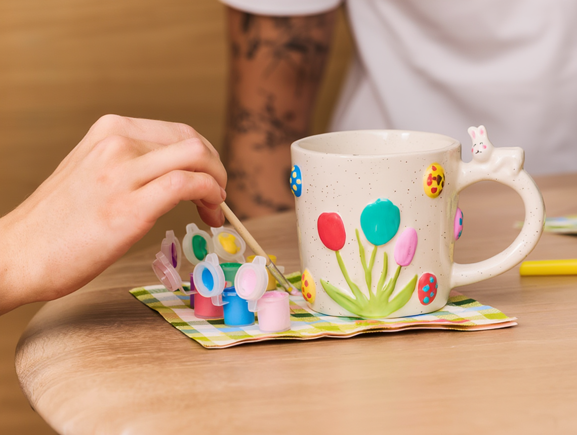 お花とたまごをあしらった、春らしいイースターデザイン。取っ手部分にはうさぎがちょこんと乗った、遊び心あふれるマグです。