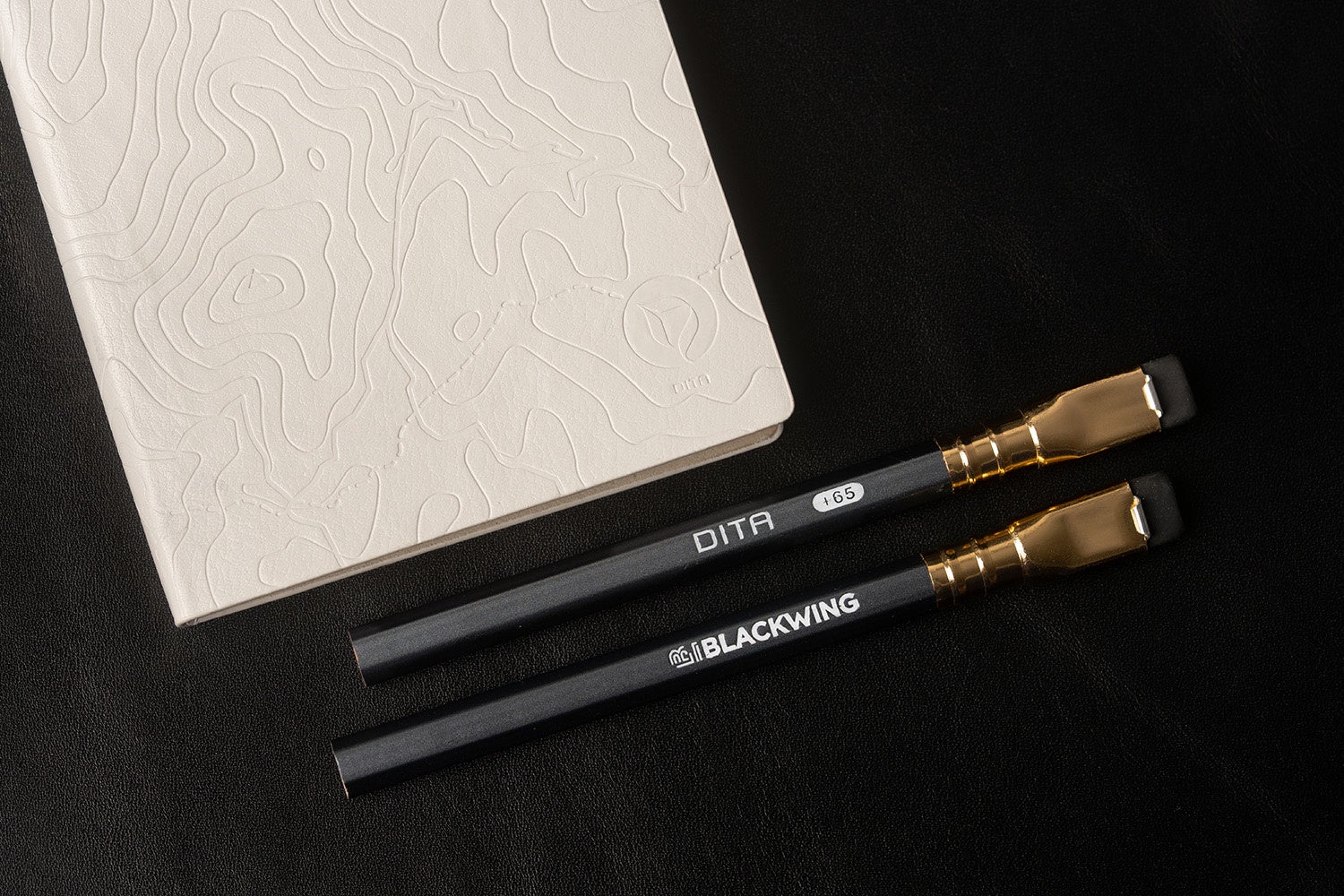 VENTURAには、単なるイヤホンの付属品に留まらない、体験を豊かにするためのアイテム群が同梱されています。実用面では、携帯や保管に便利なレザー製ウエストポーチ、そして信頼の定番であるfinal Type-Eイヤーピース。さらに、“心の必需品”として、DITAチームが丁寧に選び抜いた紙を使用した特製ノートと、それに寄り添うように添えられたBLACKWING®製ミニ鉛筆がセットになっています。