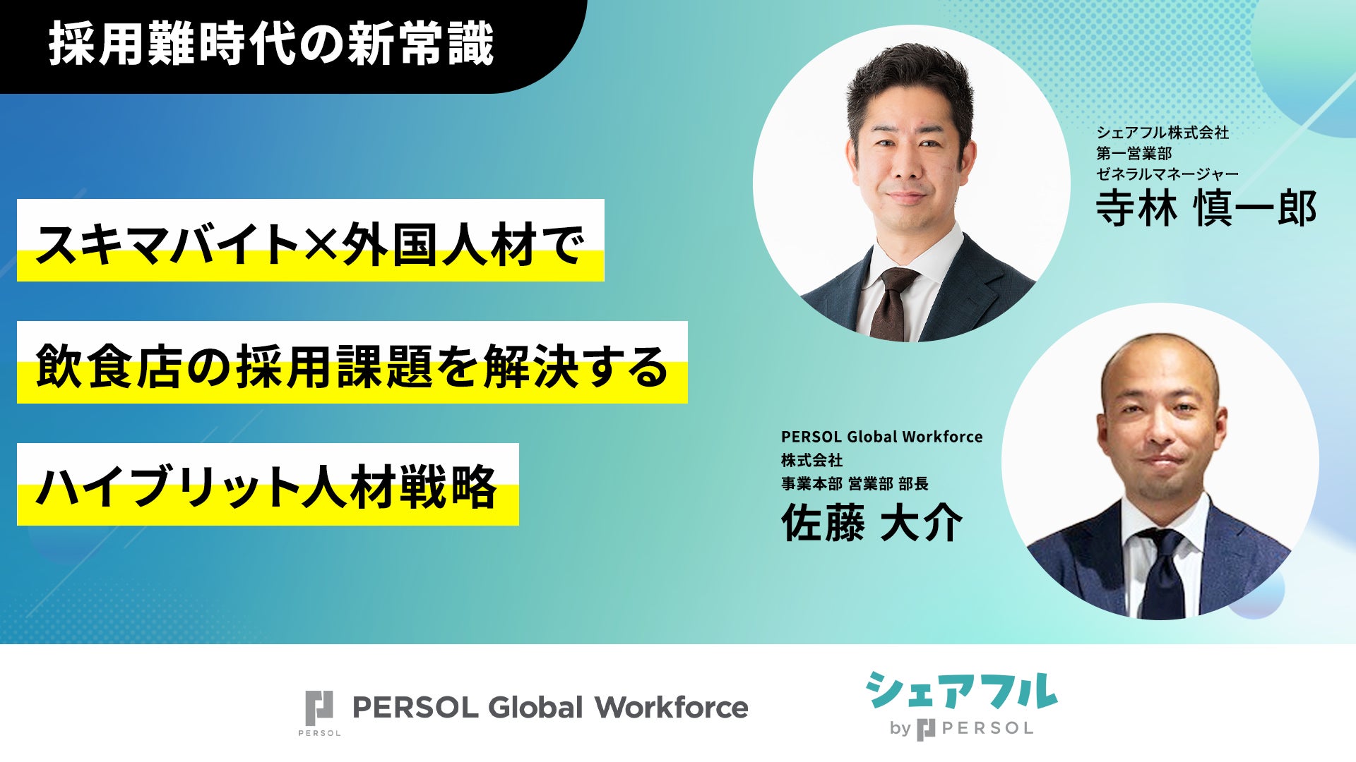 そういった労働市場の課題を解決すべく、スキマバイトアプリを運営するシェアフルと、外国人材採用支援を行うPERSOL Global Workforceの2社で共催セミナーを開催します。