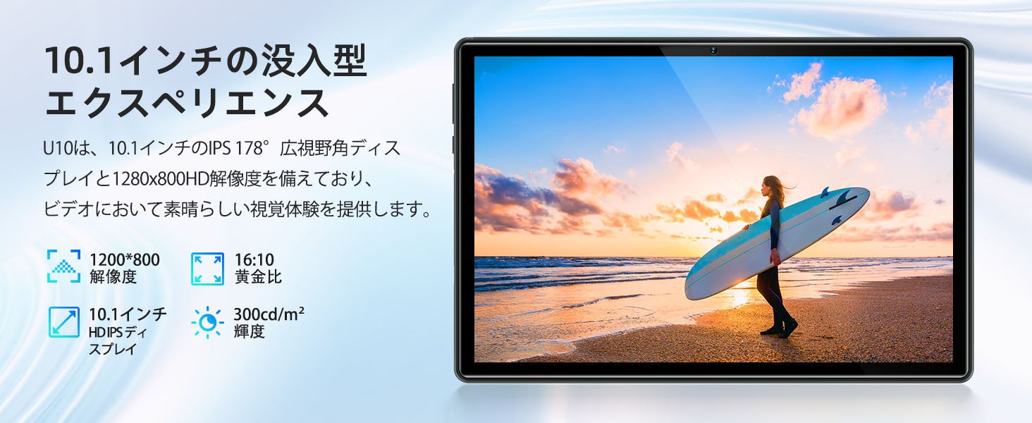 800×1280解像度の10.1インチIPS液晶は、目に優しく視認性も良好。5MP前面+8MP背面カメラで、オンライン授業やテレワークにも活躍。720P@30fpsの動画撮影にも対応。