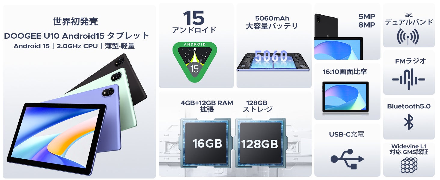 スマートデバイスのグローバルブランド「DOOGEE(ドゥージー)」は、最新Android 15搭載・16GBメモリ+128GBストレージを備えた大画面タブレット「DOOGEE U10(ユー・テン)」を、日本国内向けに発売開始いたしました。