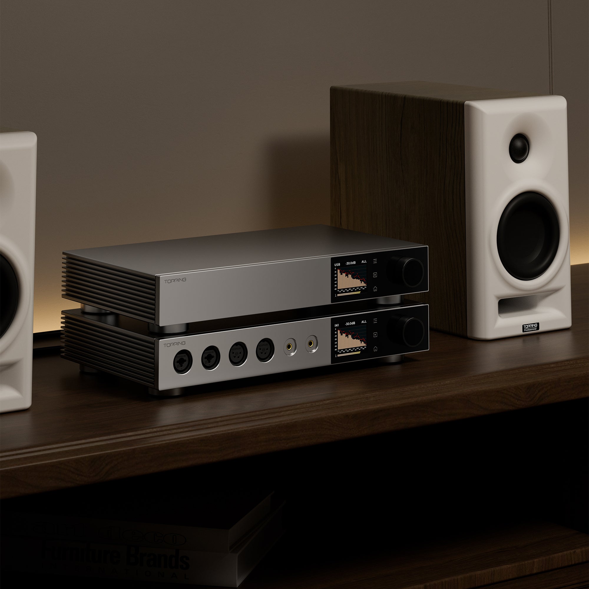 シンプルで洗練されたインダストリアルデザインを採用し、TOPPINGの音楽的理念へ焦点を当てたコンセプトを反映した美しくミニマムな筐体デザインとなっています。