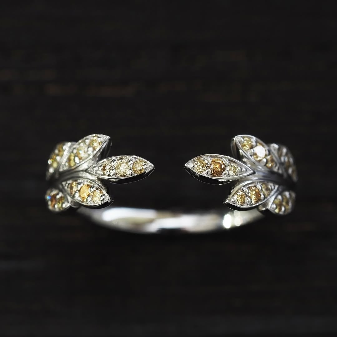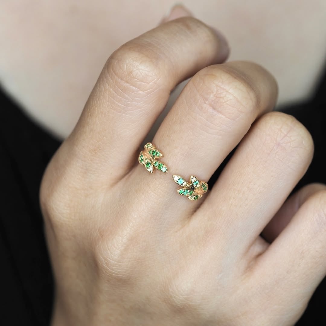 そっと芽吹いた若葉のように、指先に自然の余白を生み出すリング「Alba(アルバ)」。左右対称の繊細なフォルムが特徴のフォークリングです。