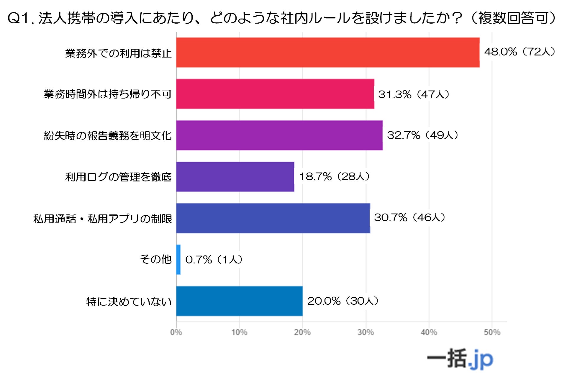 調査結果1:法人携帯の導入にあたり、どのような社内ルールを設けましたか?※複数選択可