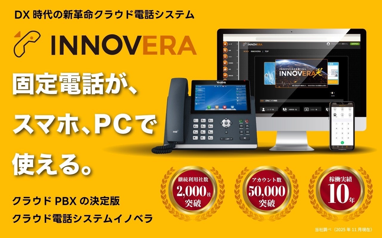 プロディライトは、「電話のDX」を推進するクラウドPBX「INNOVERA」(https://innovera.jp/)を提供しています。INNOVERAは、スマートフォンやPCにて会社の電話番号の発着信を可能にした現代の働き方に適した電話環境を提供する“Japan Quality”の国産クラウドPBXで、ビジネスフォン用途はもちろん、少人数のコールセンターの立ち上げ等、様々な用途に対応することもできます。