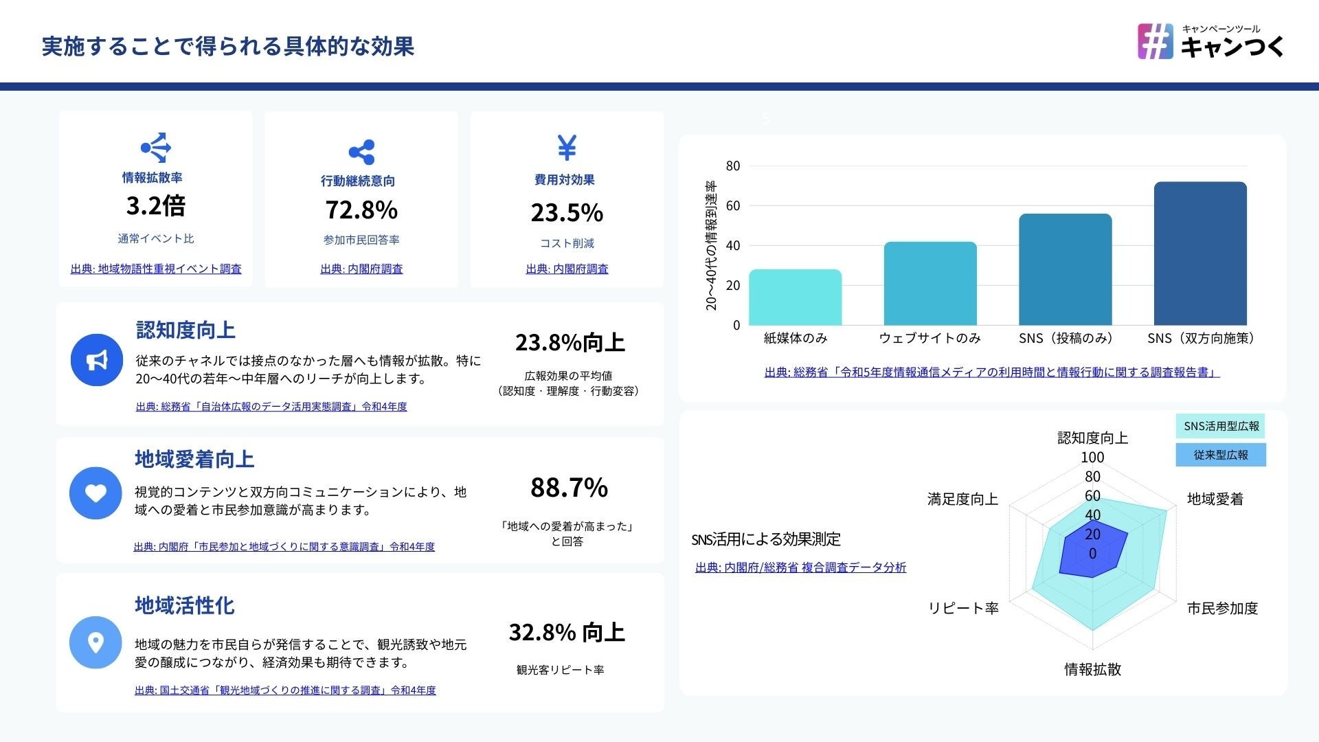 特に近年は、市民の情報収集手段がSNSへと大きくシフトする中、Instagram等を活用した情報発信や市民との双方向コミュニケーションが重視されており、SNSキャンペーンの提案ニーズが高まっています。