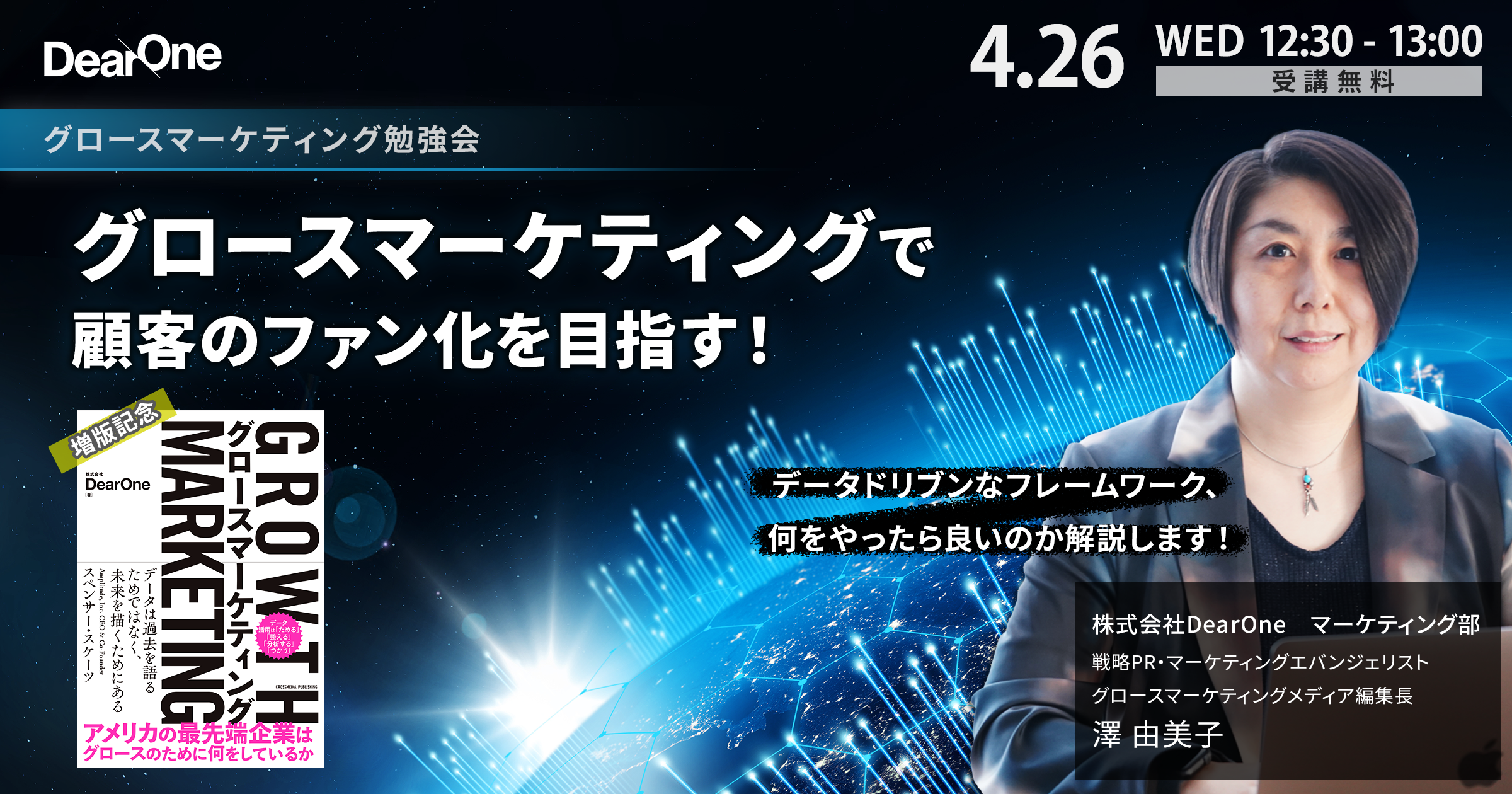 DearOneではこの概念や手法、成功事例を解説した書籍『グロースマーケティング(GROWTH MARKETING)』を出版しこの度増版することが決定しました。