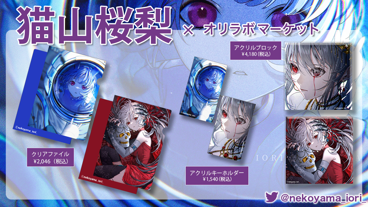 イラストレーター『猫山桜梨(ねこやまいおり)』さんの素敵なイラストのアクリルブロック・キーケース・クリアファイルなどオリジナルグッズを販売開始しました!
