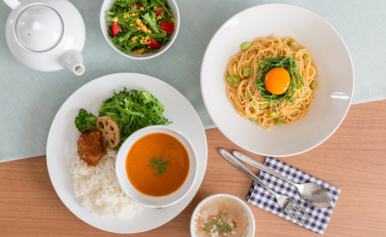 家庭料理をベースに、四季折々の彩り豊かな食材を使ったお食事や、食感や独創的な組み合わせにこだわったパフェやスイーツなど、「ゆとりの空間」オリジナルのメニューをお楽しみいただけます。