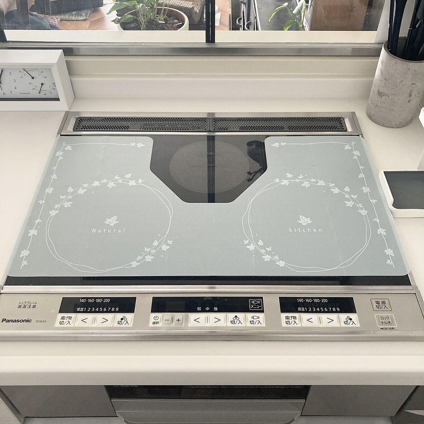 3口のIHクッキングヒーターの日々のお手入れを考えた、コンロ天板全体をカバーするシリコーン加工ガラス繊維製のマットです。