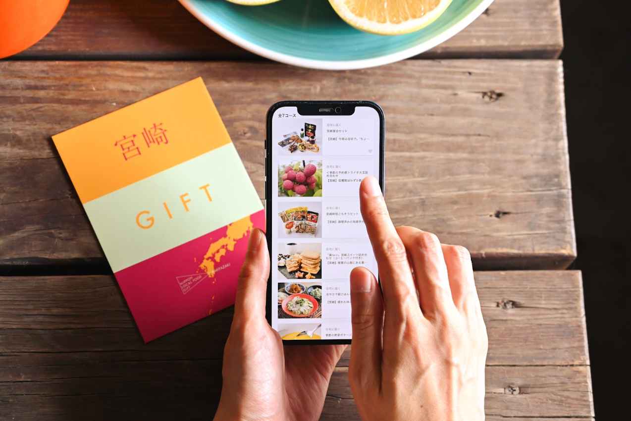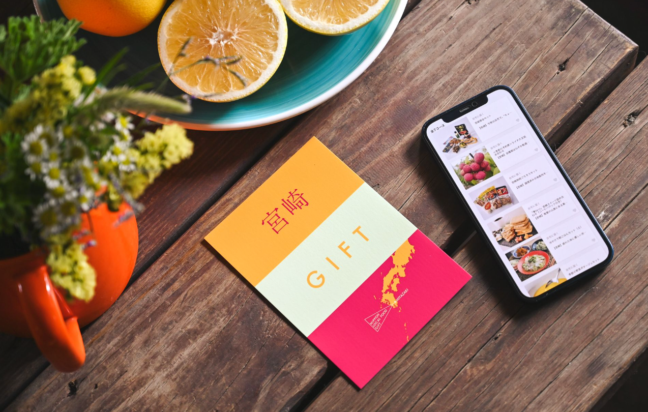 「宮崎ギフト」は、宮崎26郷土の食材を厳選して掲載したデジタル版カタログギフト。風コース(4,900円)/ 土コース(9,800円)の2つのコースをご用意しました。
