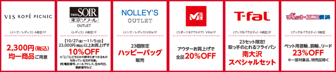三井アウトレットパーク 多摩南大沢の開業23周年を記念し、参加ショップから2,300円均一、23%オフなど