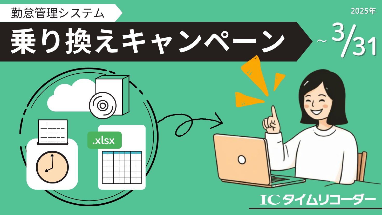 タイムカードやエクセル、他社様のクラウド型勤怠管理システムからのお得な乗換えキャンペーンを実施中。忙しい労務担当者様にぴったりなIC勤怠のスタートダッシュキャンペーン!