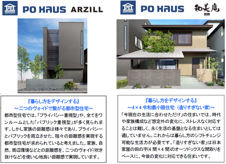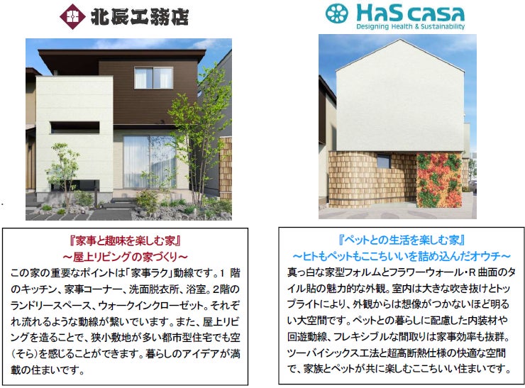 『PO HAUS』(ARZILL.、和美庵 の2 タイプ) 『北辰工務店』 『HaScasa』 のモデルハウス4 棟を揃えたポラスグループだけの単独展示場で、2018 年にオープンした千葉県の「体感すまいパーク船橋」「体感すまいパーク柏」、2021 年オープンの埼玉県の「体感すまいパーク東浦和」、2022 年オープンの「体感すまいパーク越谷」に次ぐ5 カ所目となるもので、東武東上線沿線では初出店となります。