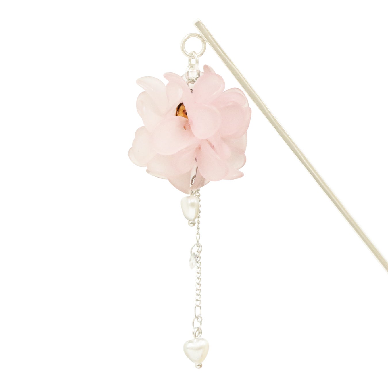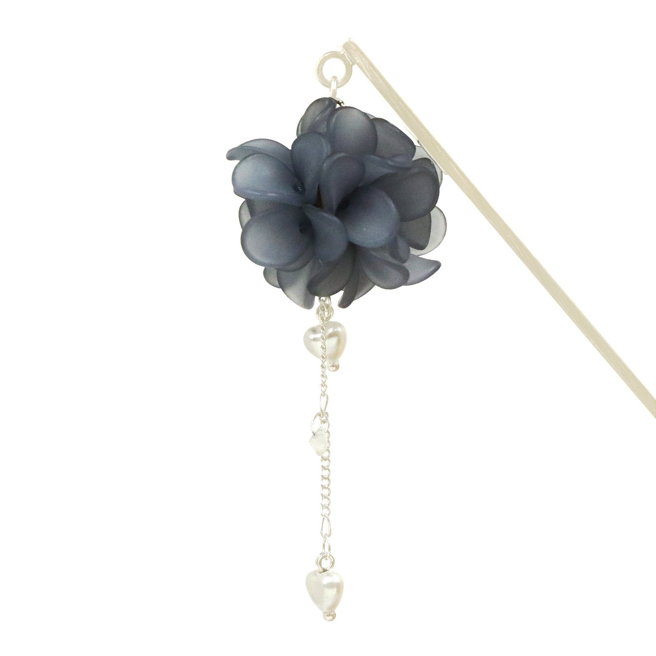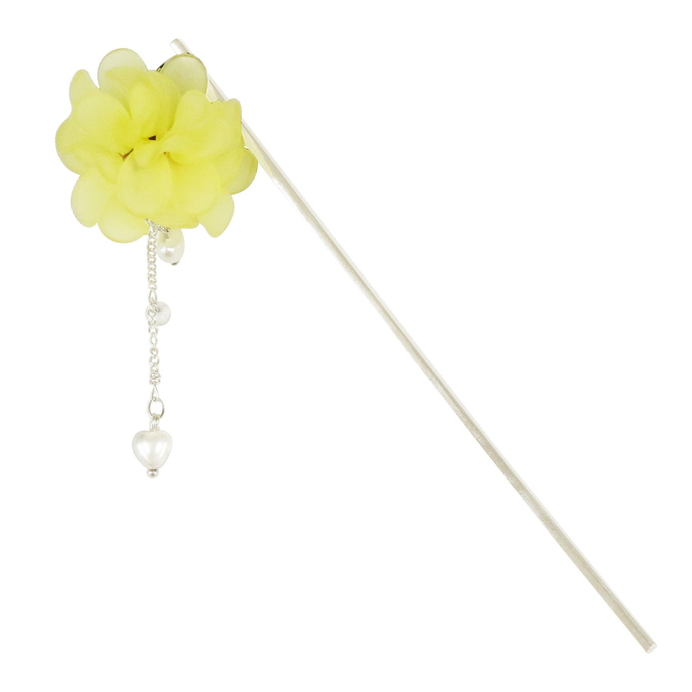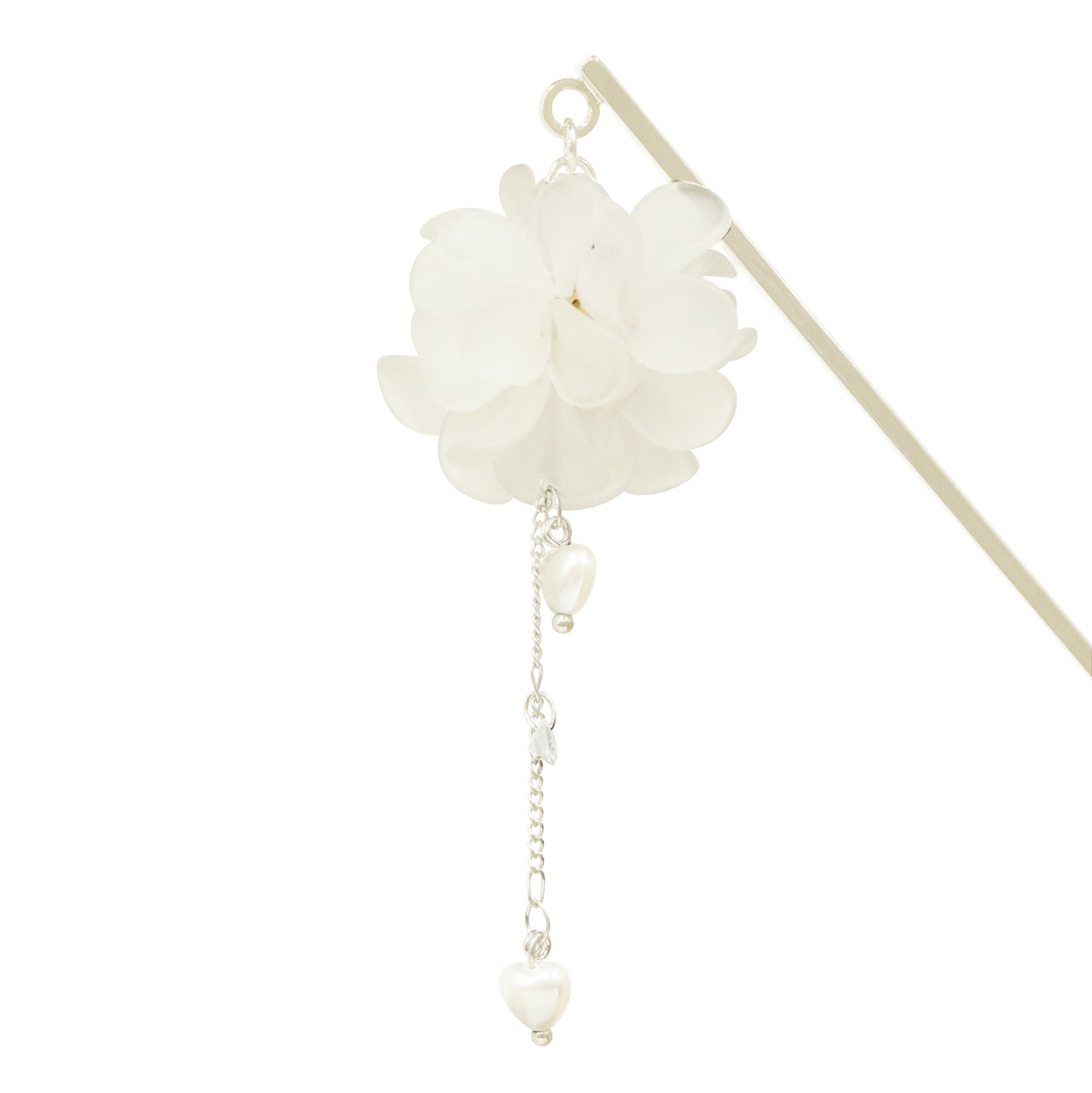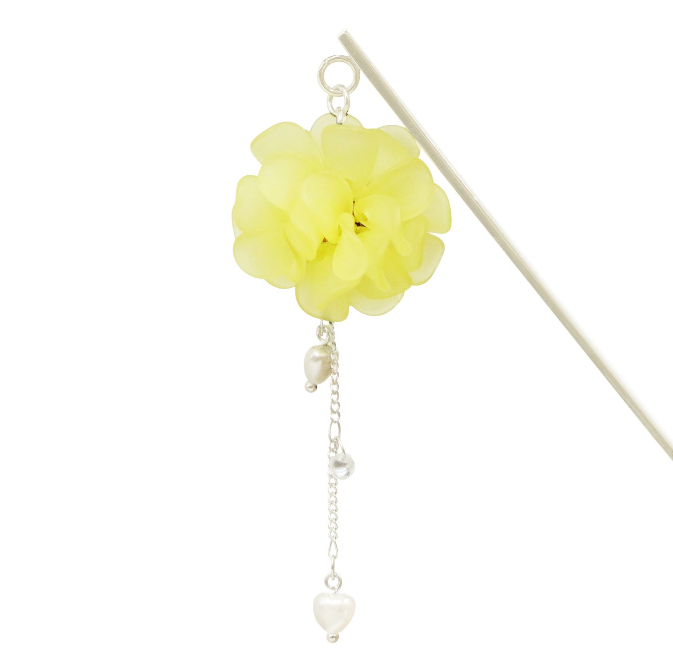 やわらかな印象のパーツを重ね合わせ、可愛らしい鞠のようなフォルムに仕立てた一本簪です。