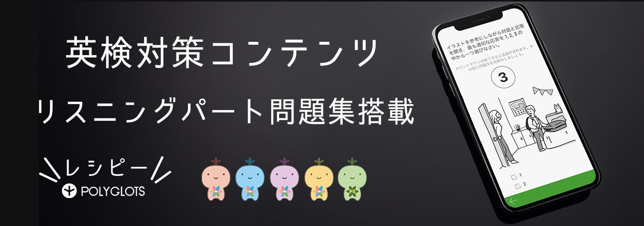 英検対策にも強い英語学習アプリ『レシピー』が、リスニングパート対策問題集を搭載しました。 - 株式会社ポリグロッツ( POLYGLOTS )