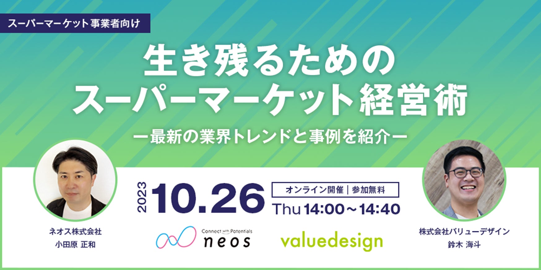 10月26日開催、ネオス×バリューデザイン共催Webセミナー「生き残るためのスーパーマーケット経営術-最新の業界トレンドと事例を紹介-」