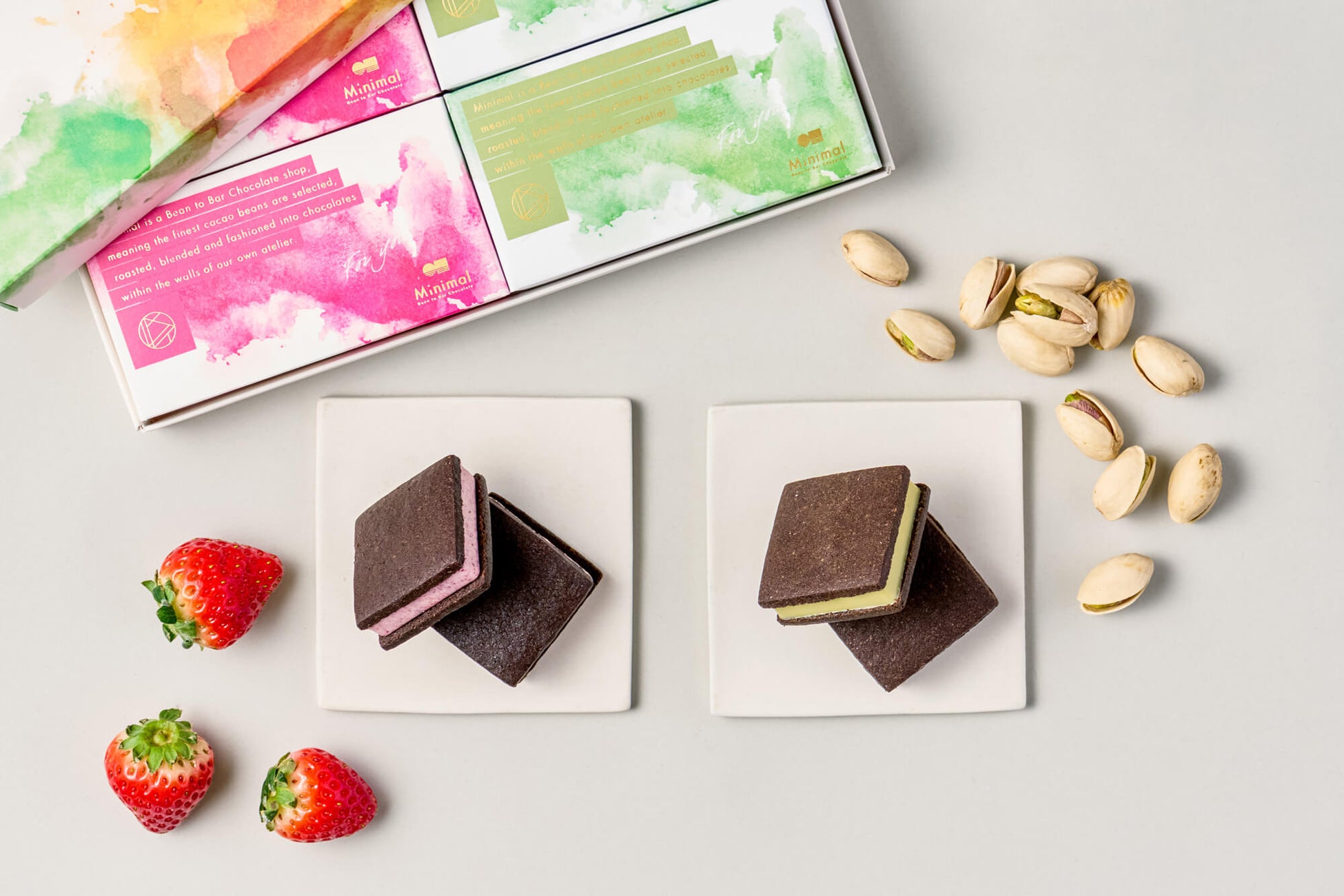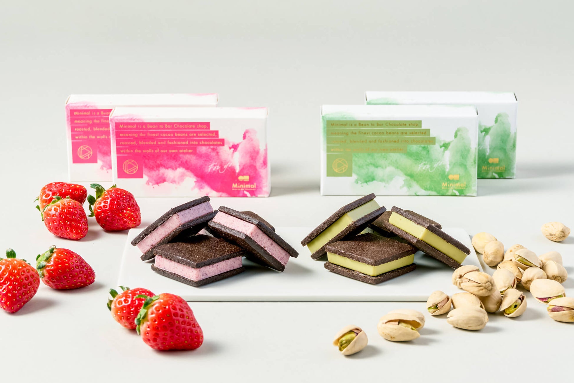 Minimal、冬季限定「チョコレートサンドクッキー -苺&ピスタチオ- 」11月28日発売。クリスマスやバレンタインギフトにもおすすめのギフト人気No.1のサンドクッキーの期間限定フレーバー。