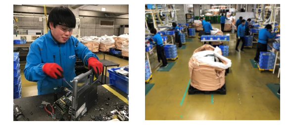 回収したパソコンは、セキュリティが確保された専用施設に運ばれ、1台ずつ手作業で解体し再資源化処理を行います。この手作業の工程で約30人の知的障がいのある方が活躍しています。回収量が増えれば、障がい者の雇用も拡大するモデルを目指しています。