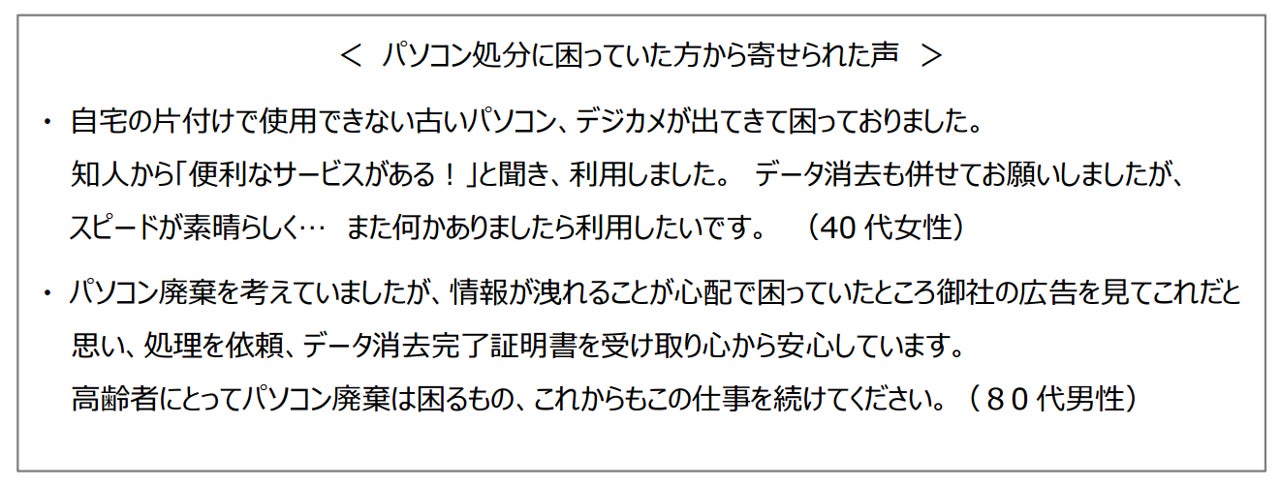リネットジャパンは、今後も自治体と連携して宅配便を活用したパソコン・小型家電のリサイクルを推進し、限りある資源の有効活用・循環型社会の実現に向けて取り組んで参ります。