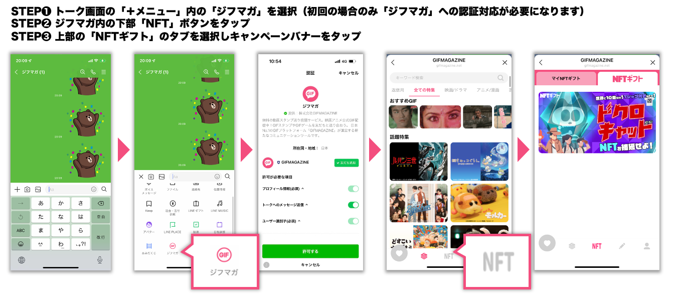 ・NFTギフトはGIFMAGAZINEが運営する、LINEミニアプリ「ジフマガ」内の機能です。