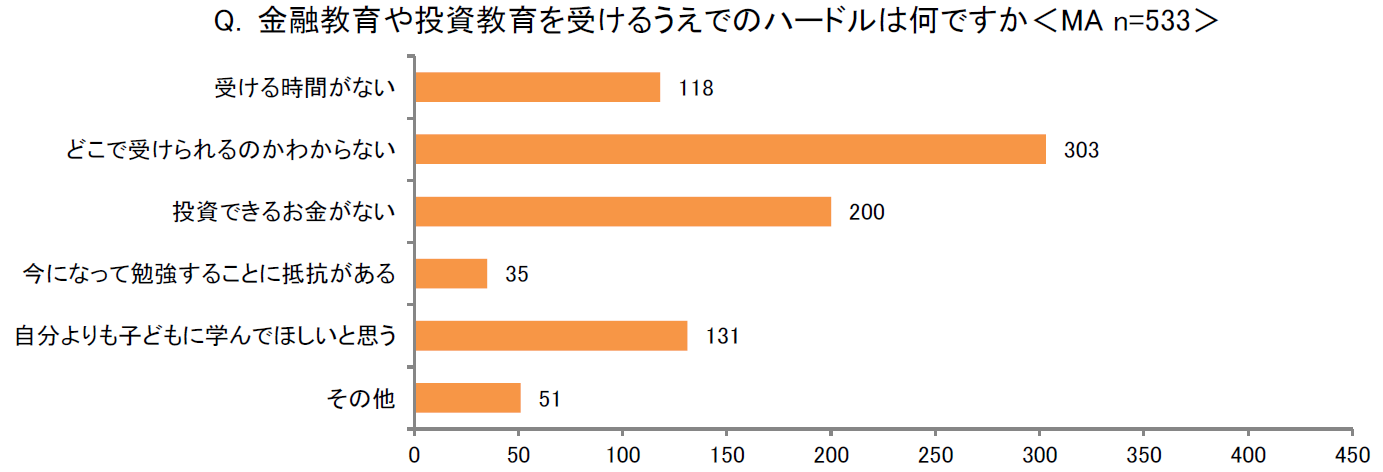 半数以上が学ぶ場所がわからないことに金融教育へのハードルを感じる結果に