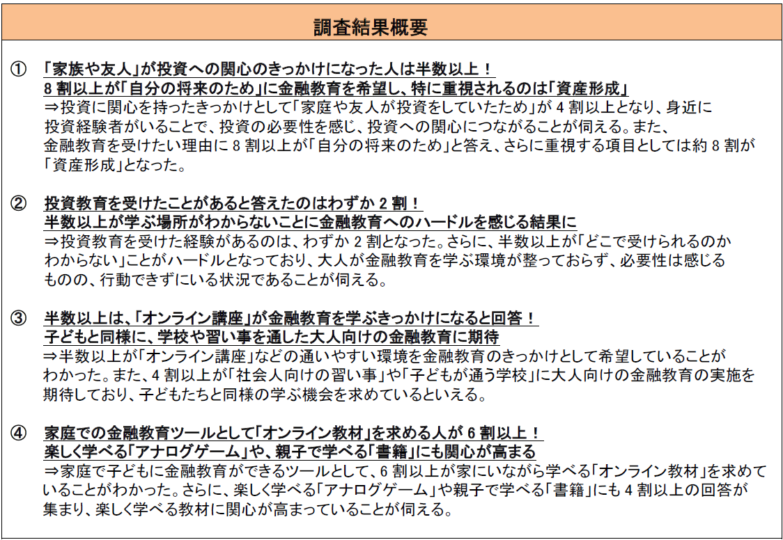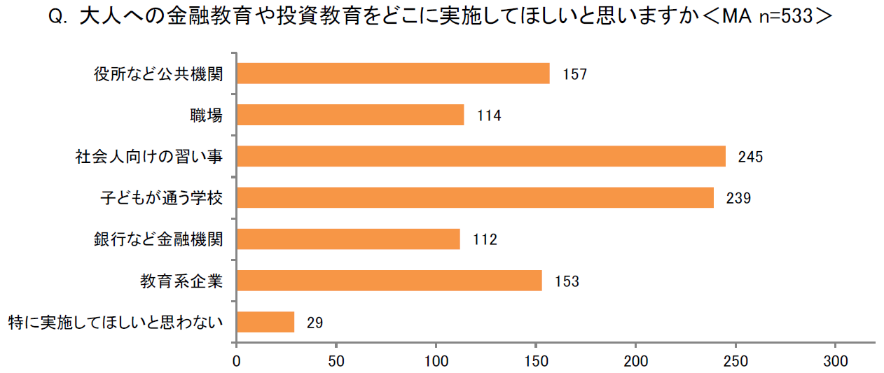 子どもと同様に、学校や習い事を通した大人向けの金融教育に期待