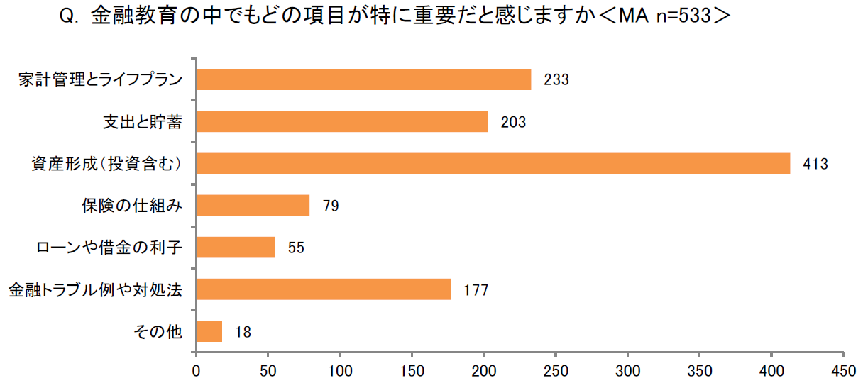 8割以上が「自分の将来のため」に金融教育を希望し、特に重視されるのは「資産形成」