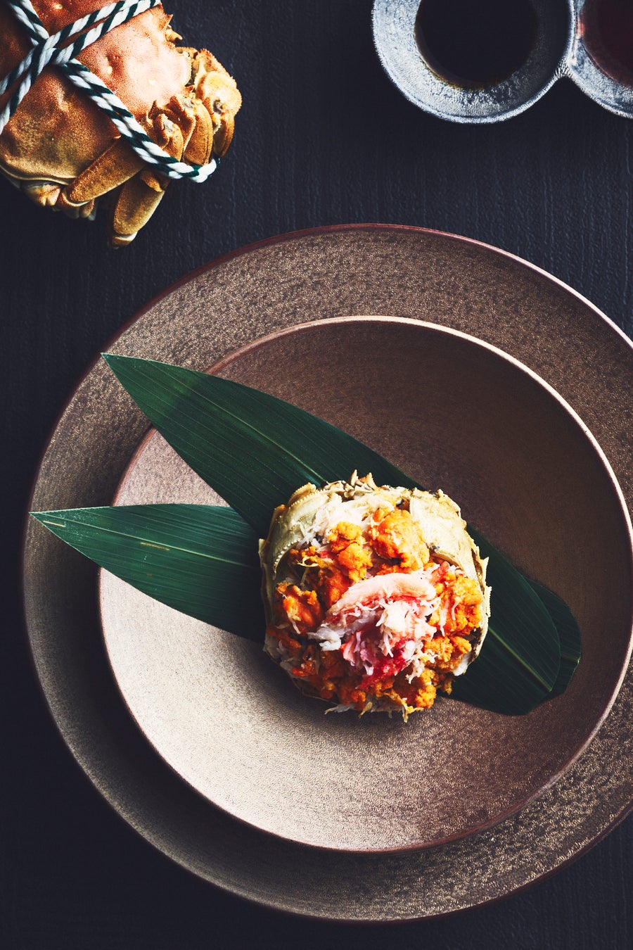 上海蟹の殻から抽出したスープと蟹脂にほぐし身を加えた芳醇で奥深い味わいの自家製上海蟹醤は、料理とあわせれば深みをもたらすだけでなく、そのまま食しても美味。思わず紹興酒が進む、料理長安藤のこだわりがつまった特製ソースです。