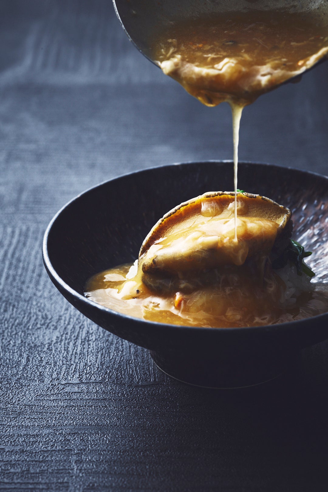 ・活け蝦夷鮑入り上海蟹醤あんかけご飯