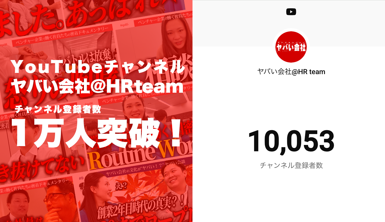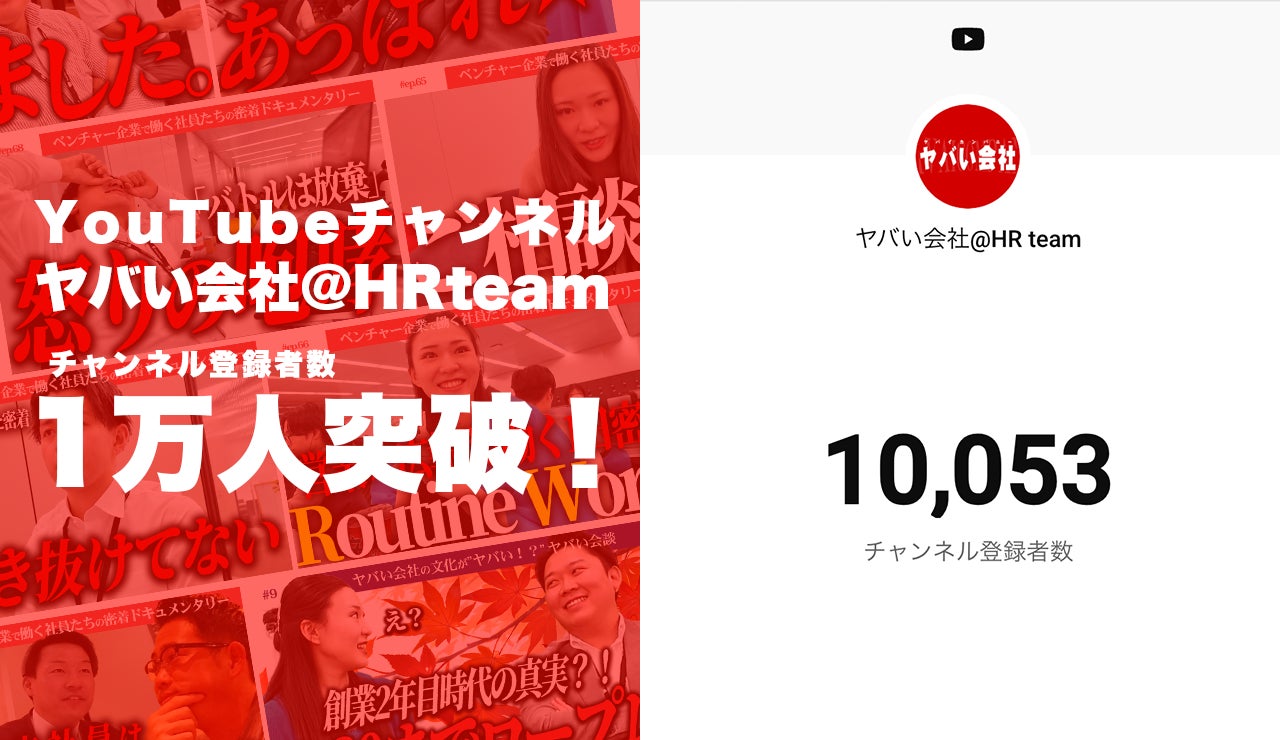 YouTubeチャンネル『ヤバい会社@HRteam』が登録者数1万人を突破!