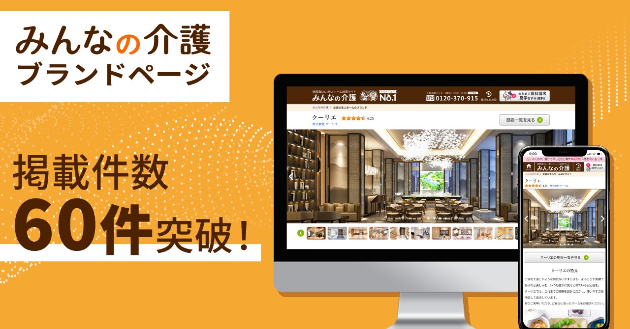 こうした課題を背景に、株式会社クーリエでは、全国の有料老人ホーム等を展開するブランドごとの特徴や費用相場を一元的に比較できる「ブランドページ」を開設し、2024年8月1日よりサービスを提供開始しました。比較検討を支援するこの取り組みが評価され、掲載に参画するブランドの数は着実に増加。サービス開始から8か月で契約ブランド数は60件を突破し、業界内でも注目を集めています。